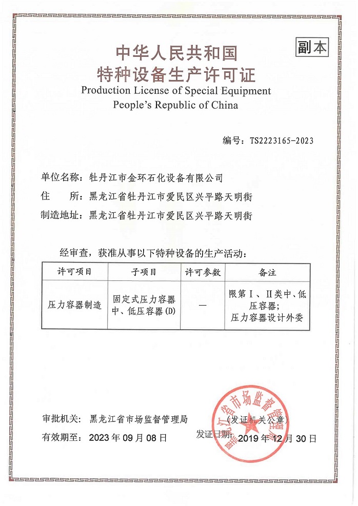 Mudanjiang Jinhuan Petrochemical Equipment CO.,LTD 牡丹江市金環(huán)石化設(shè)備有限公司 版權(quán)所有 www.bjliheng.com