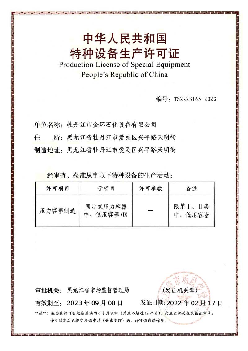 Mudanjiang Jinhuan Petrochemical Equipment CO.,LTD 牡丹江市金環(huán)石化設(shè)備有限公司 版權(quán)所有 www.bjliheng.com